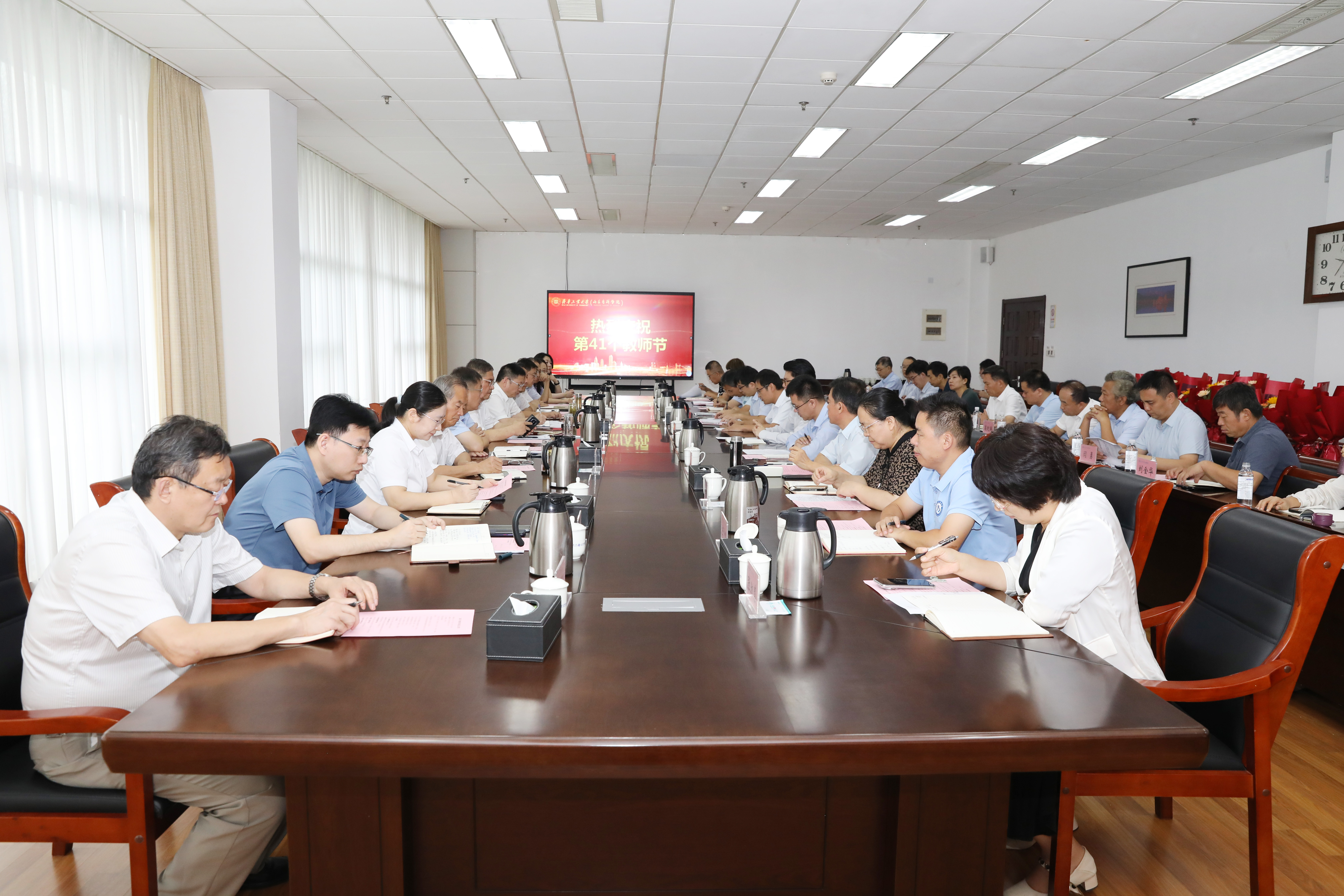 为庆祝第41个教师节,着力营造崇教尚学的浓厚风气,激励全体教职员工进一步筑牢初心,勇担使命,9月5日,校(院)在长清校区召开教师节座谈会,校(院)党委书记吴衍涛出席会议并讲话,校(院)长段培永主持会议,校(院)党委副书记刘玉,驻校(院)纪检监察组组长,纪委书记房克乐,副校(院)长乔丙武,许崇海 91香蕉视频,吉兴香,校(院)党委委员,组织部部长侯连涛出席会议,校(院)教师代表以及相关职能部门主要负责人参加会议。
