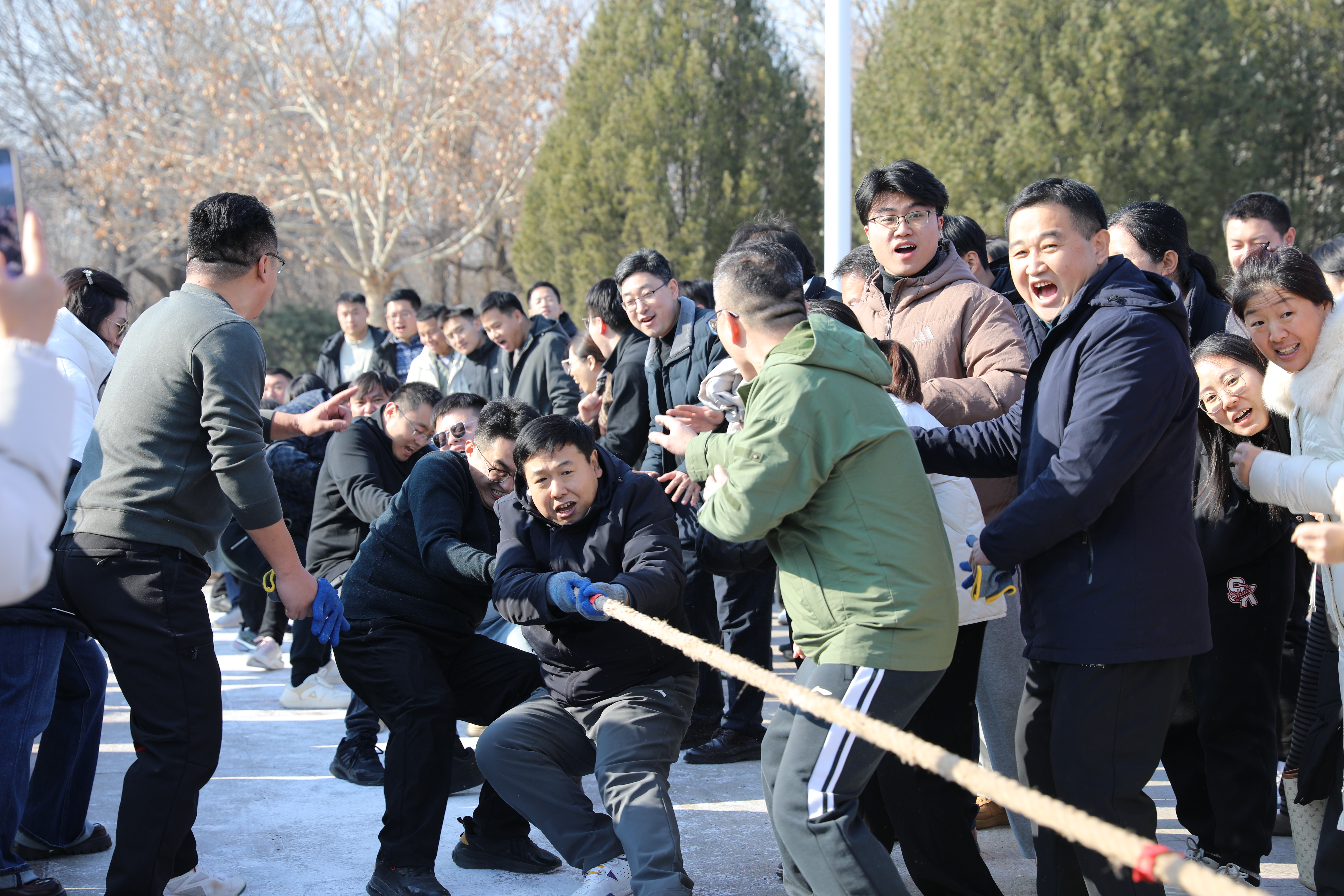 比赛现场,参赛队员们紧握长绳,脚蹬实地,齐心协力向后拉,场边啦啦队呐喊助威声震天动地,将现场气氛一次次推向高潮,各代表队严守赛场规则,秉持“友谊第一,比赛第二”的体育精神,赛出了风格 91黄,赛出了水平,充分展现了工大(科院)师生团结协作,奋发向上,勇往直前的精神风貌。