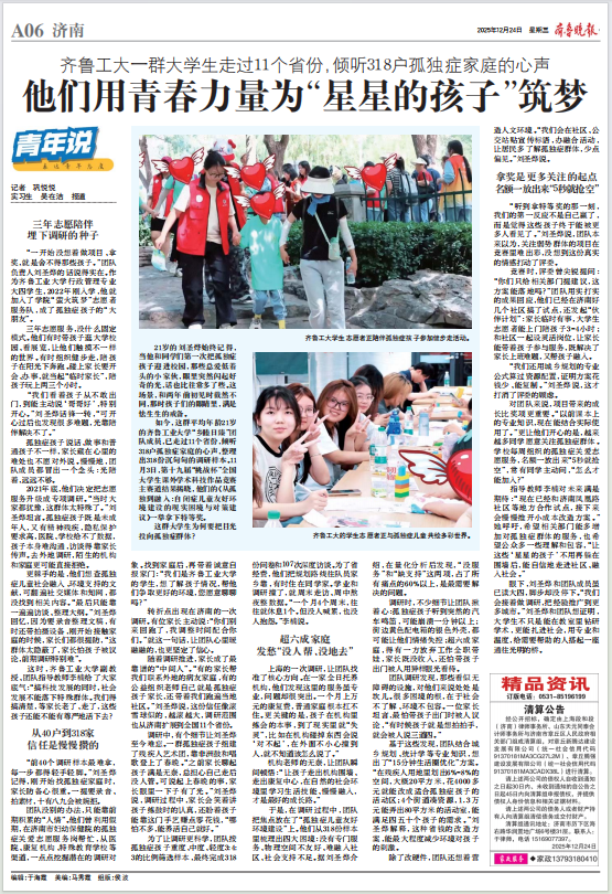 "91视频入口" 【齐鲁晚报】齐鲁工大一群大学生走过11个省份,倾听318户孤独症家庭的心声 他们用青春力量为“星星的孩子”筑梦