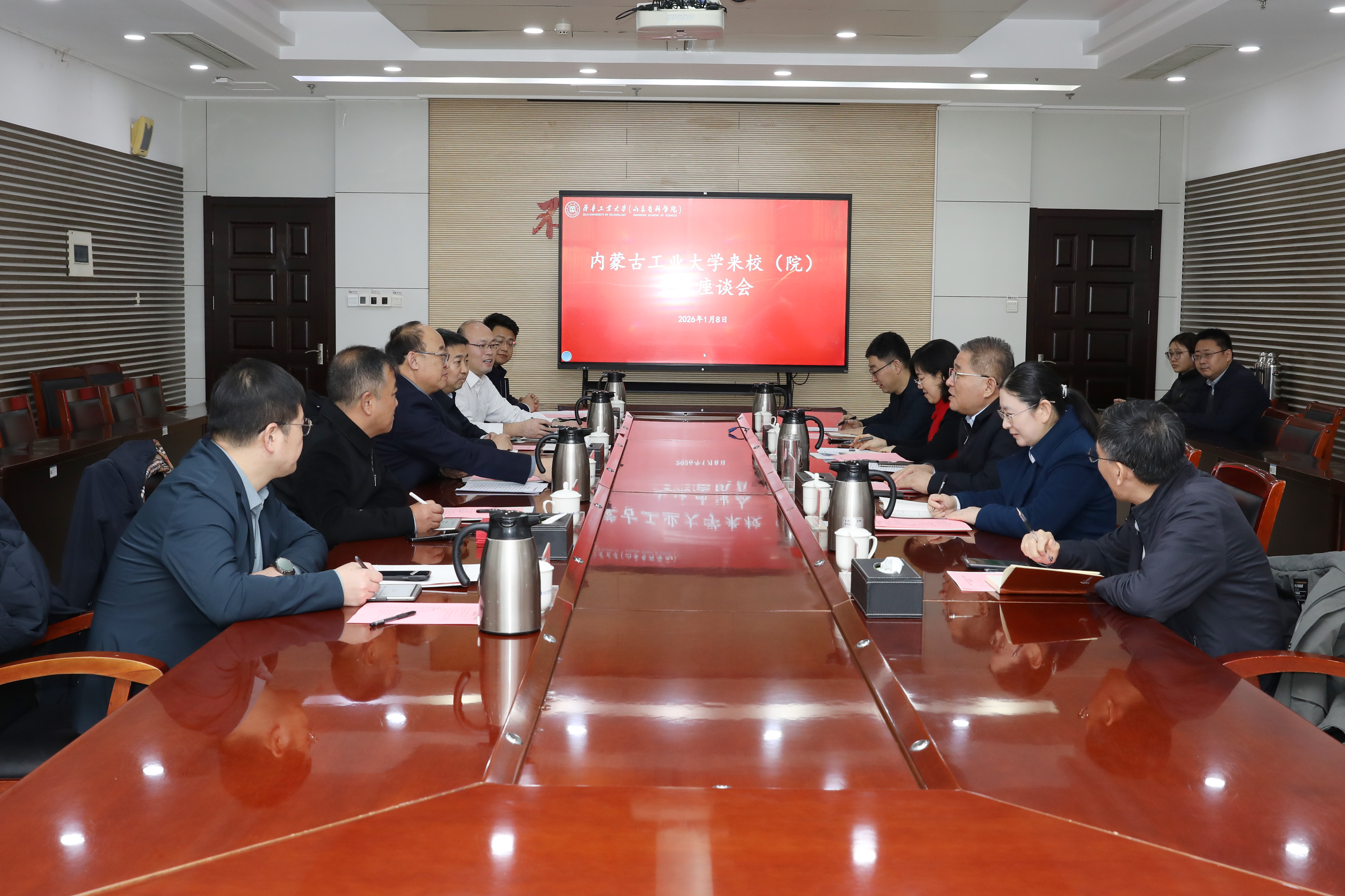 1月8日,内蒙古工业大学党委书记李占峰一行来齐鲁工业大学(山东省科学院)考察交流,校(院)党委书记吴衍涛,副校(院)长吉兴香出席活动 91香蕉视频,内蒙古工业大学党政办公室,成果转化与产业处,国内合作交流处,教师发展中心,校(院)教师工作部,科研管理部,科技合作与成果转化处相关负责人参加活动。