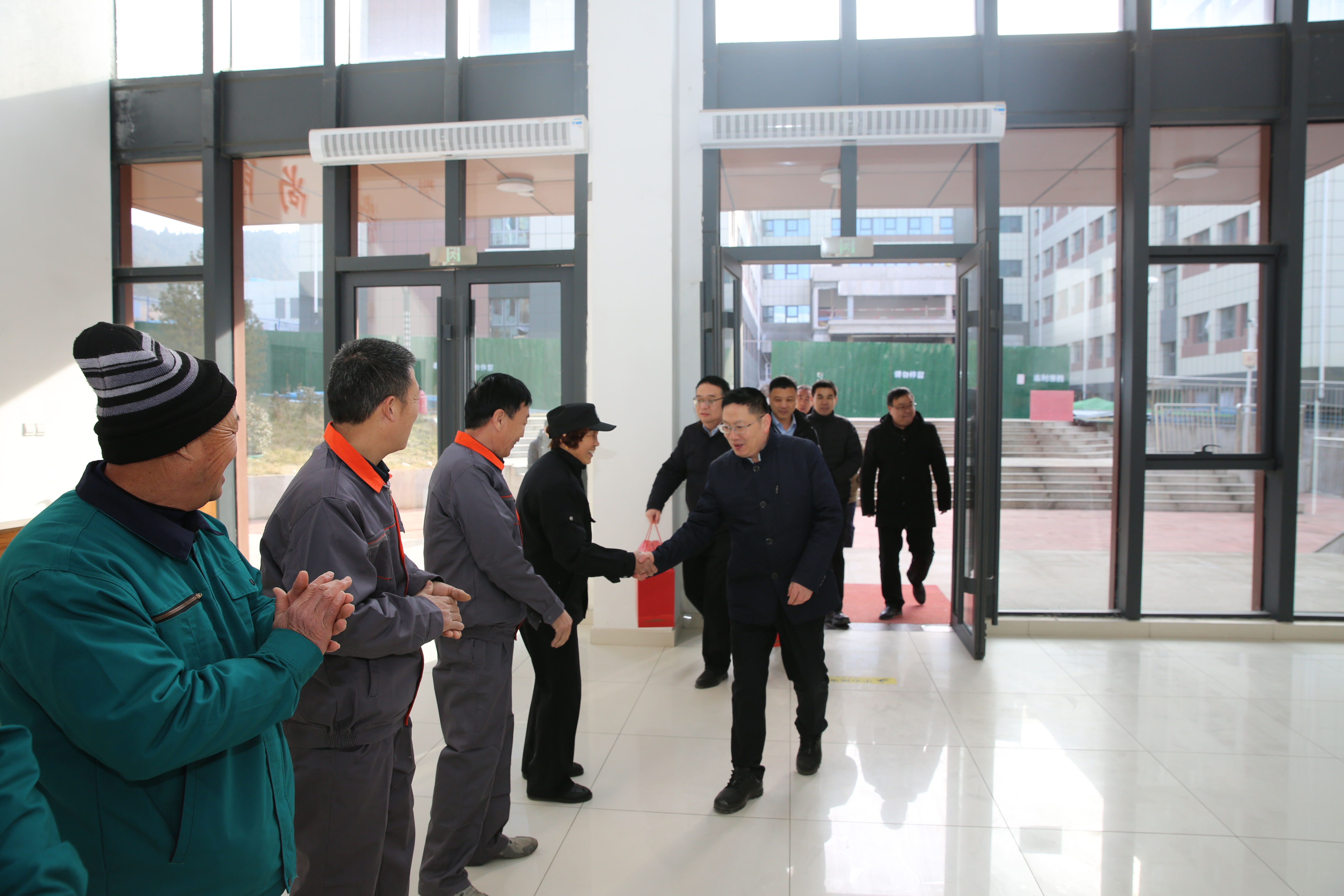校(院)领导来到门卫值班室,食堂,校医院,物业服务中心,供热中心,配电室,学生公寓,基建处,计财处,总值班室等处,与值班人员亲切交流,每到一处,领导们详细了解春节期间值班人员的工作安排,生活保障及后勤保障情况,送上慰问品和诚挚的新春祝福,领导们对坚守岗位的教职工“舍小家,顾大家”的奉献精神给予高度赞扬,叮嘱他们在履职尽责的同时注意身体健康,确保平安祥和迎新春 91香蕉。
