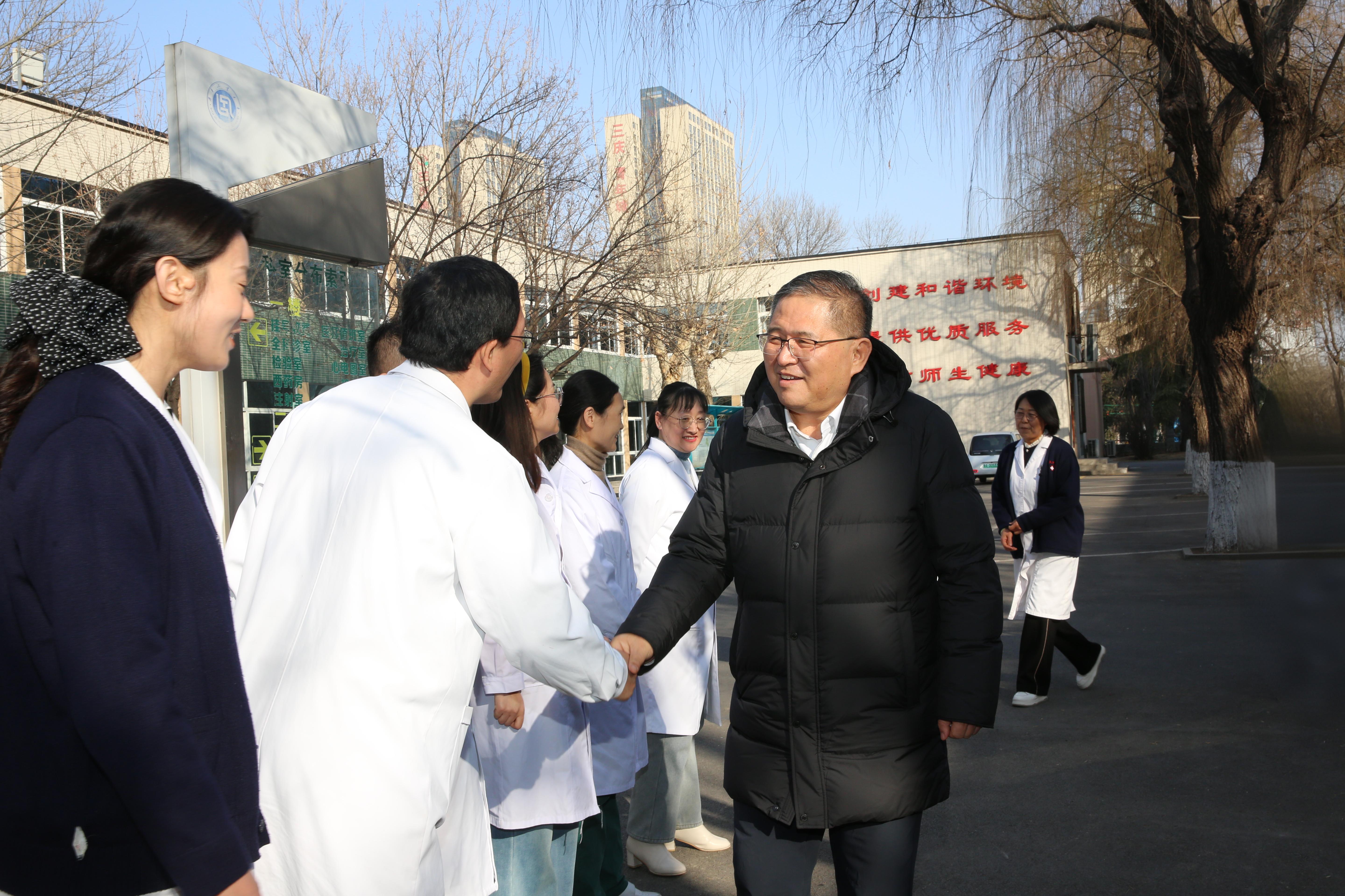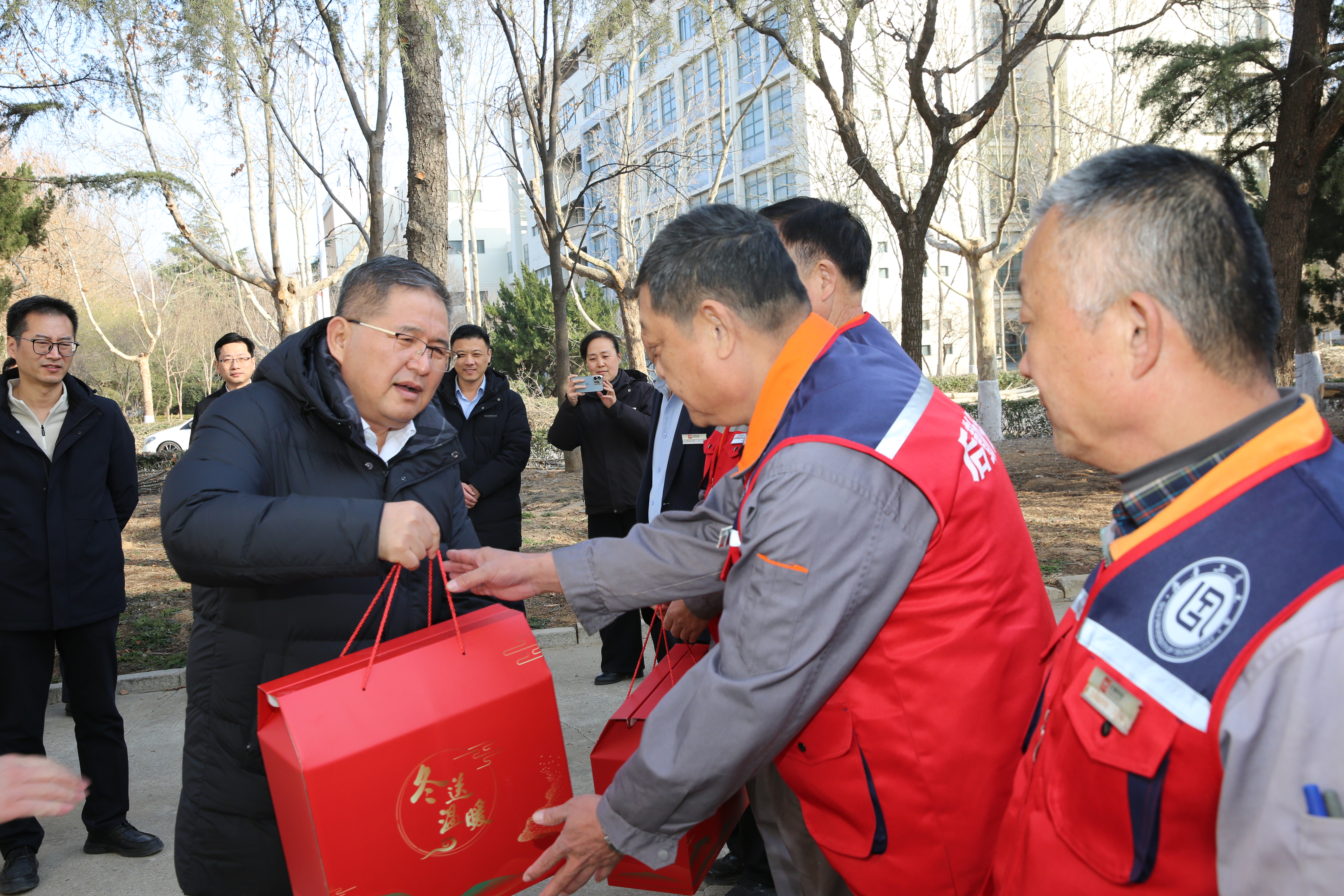 新春佳节将至,校(院)领导班子成员吴衍涛,段培永,刘玉,房克乐,杨美红,许崇海,吉兴香,侯连涛,刘纪波分别来到长清,千佛山,历城,彩石等校区(园区),亲切走访慰问假期坚守在一线岗位上的教职员工并开展全面细致的节前安全检查 91香蕉视频,办公室,学生工作处,安全管理处,工会,人事处,国际合作处,后勤保障处等部门负责人陪同。